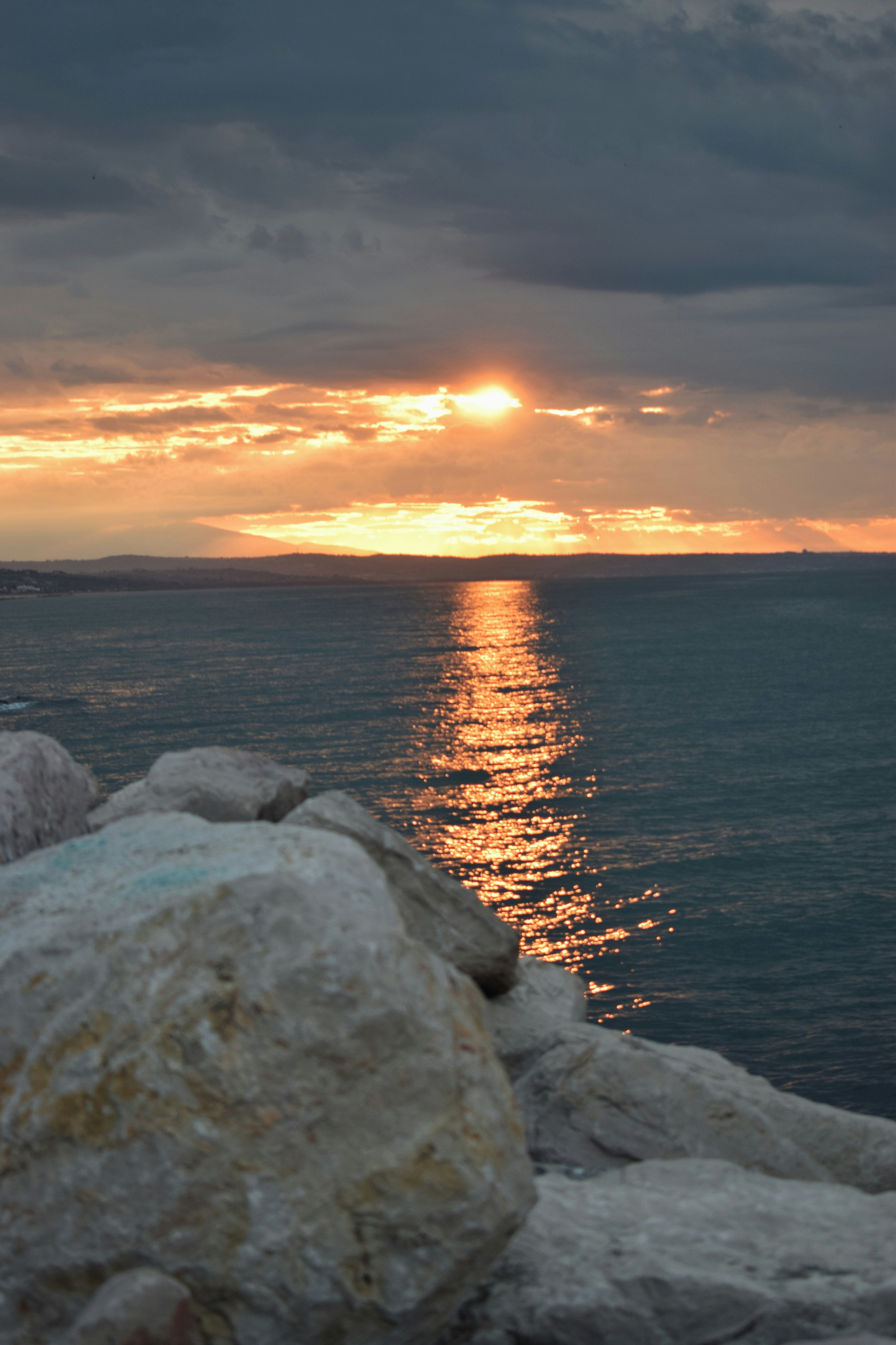 At dawn, the sun touches the ocean